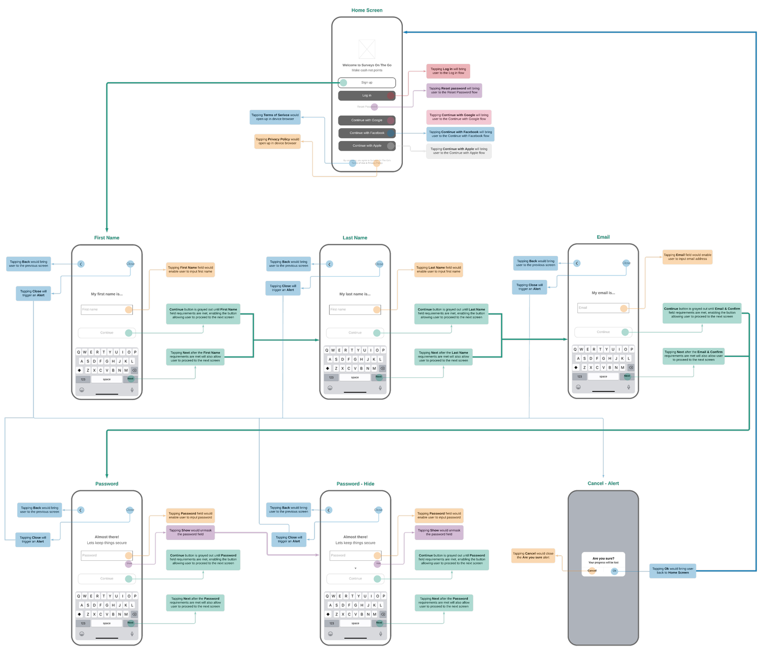 Updating the user flow was essential to get users to participate in surveys faster. Users download the app to take surveys for cash rewards; reducing the number steps it would take for a user to take their first survey was a primary goal.