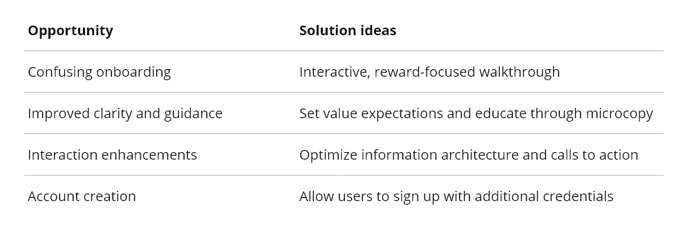 Based on the insights, I generated and prioritized the following potential solutions:
