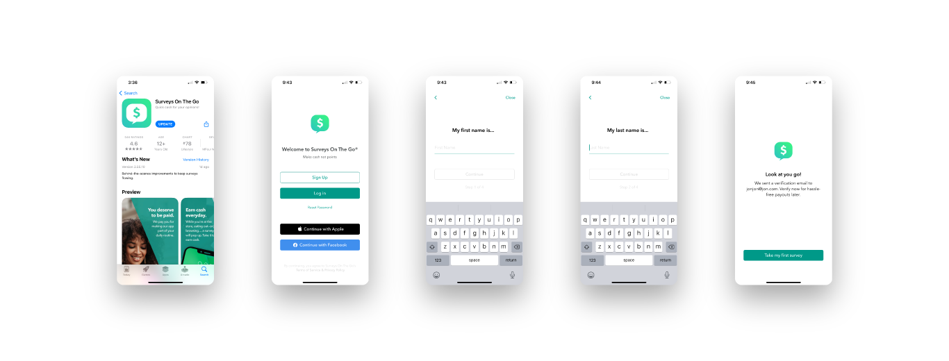 Surveys On The Go is a mobile product where onboarding plays a critical role in activation. The first-time user experience needed to help users understand value quickly, move through setup with confidence, and reach account creation with less friction.